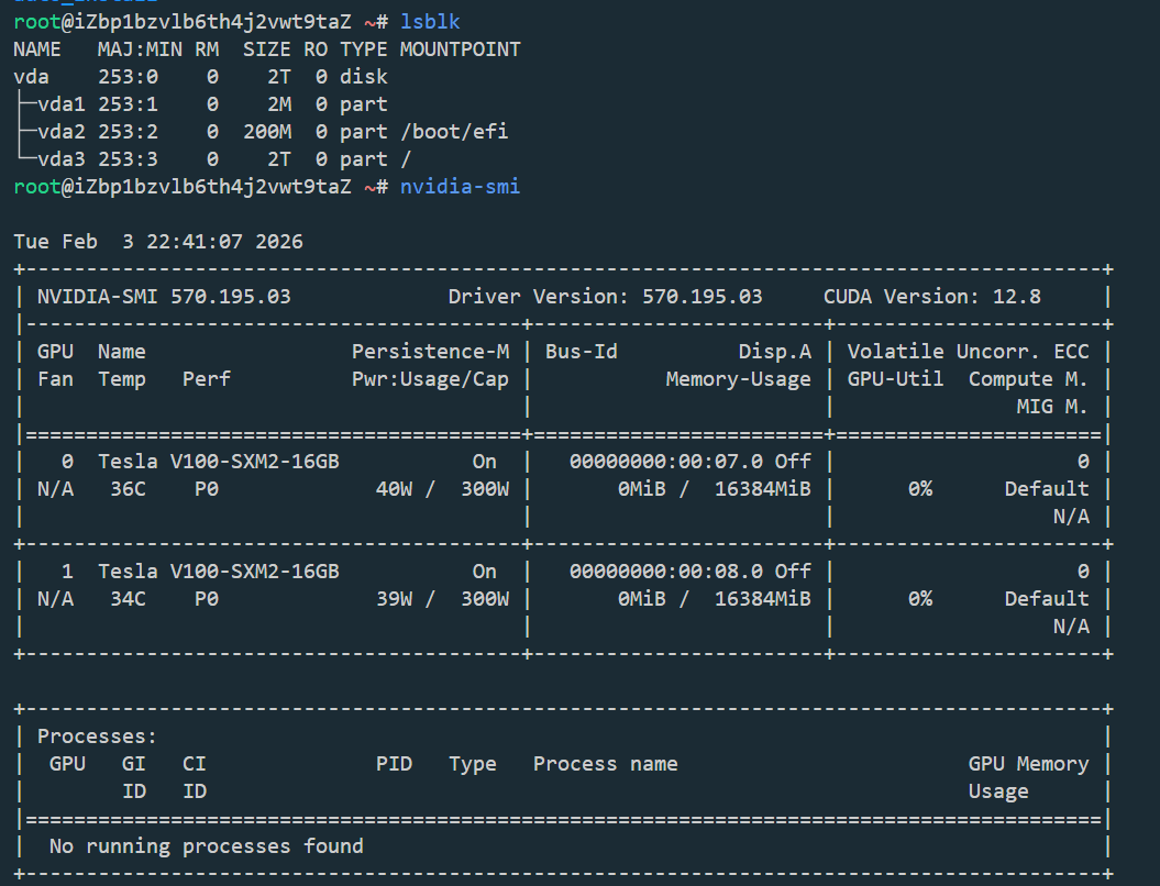 购买 ecs.gn6v-c8g1.4xlarge实例,选择Alibaba Cloud Linux 3.2104 LTS 64位 预装NVIDIA GPU驱动和 CUDA,配置密钥对后通过vscode远程登录