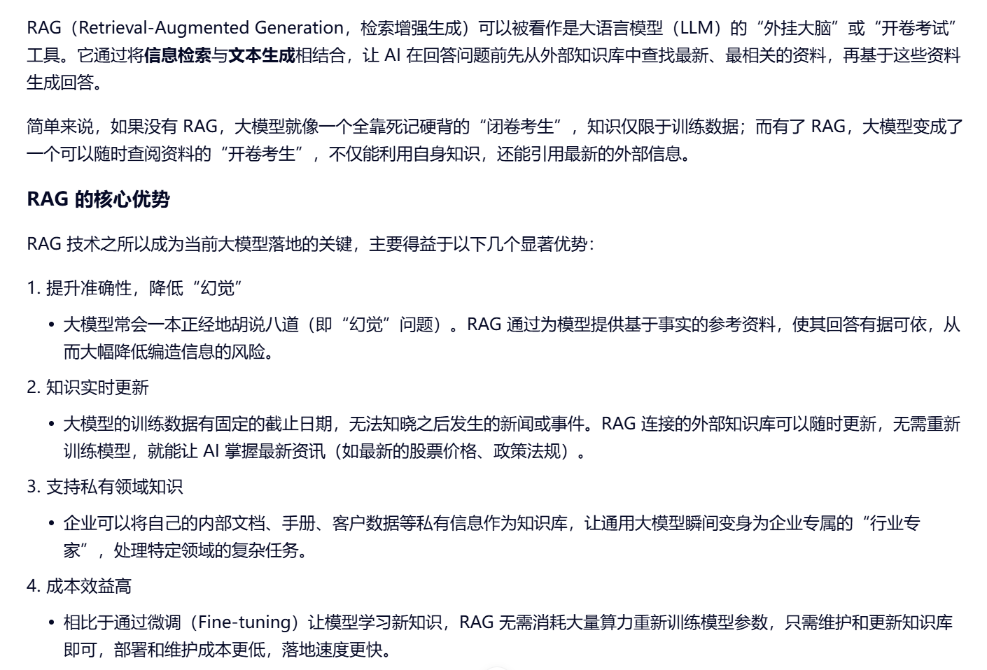 事实性错误(幻觉) :让模型的回答有据可依,大幅降低其“一本正经胡说八道”的概率。